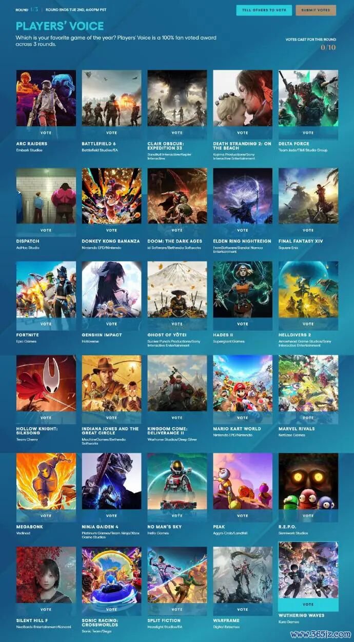 TGA「玩家之声」投票开启,《原神》《鸣潮》《三角洲》入围